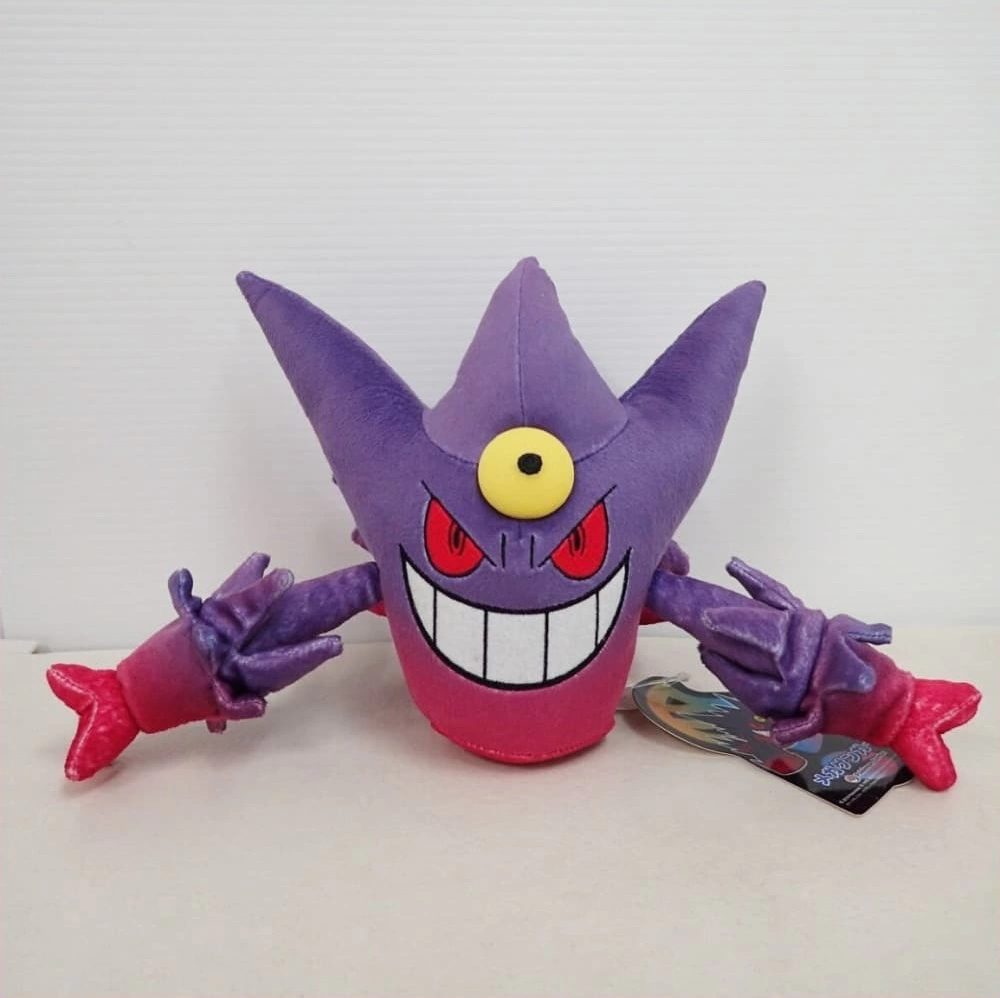 今回は、メガゲンガーのぬいぐるみをお譲りいただきました!メガゲンガーは最新作『ポケモンZA』で“足がある”と話題になりましたね。ぬいぐるみでは見えませんが、意外と小さくてびっくりしますよ~