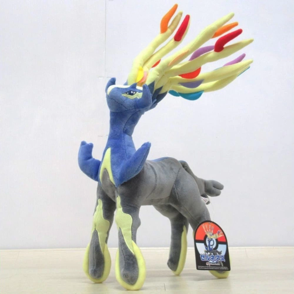 今回は、ゼルネアスのぬいぐるみをお譲りいただきました!3DSソフト『X・Y』のパッケージを飾った伝説のポケモンです。よーく見ると目の中に「X」が描かれているので、気になる方はぜひチェックを!