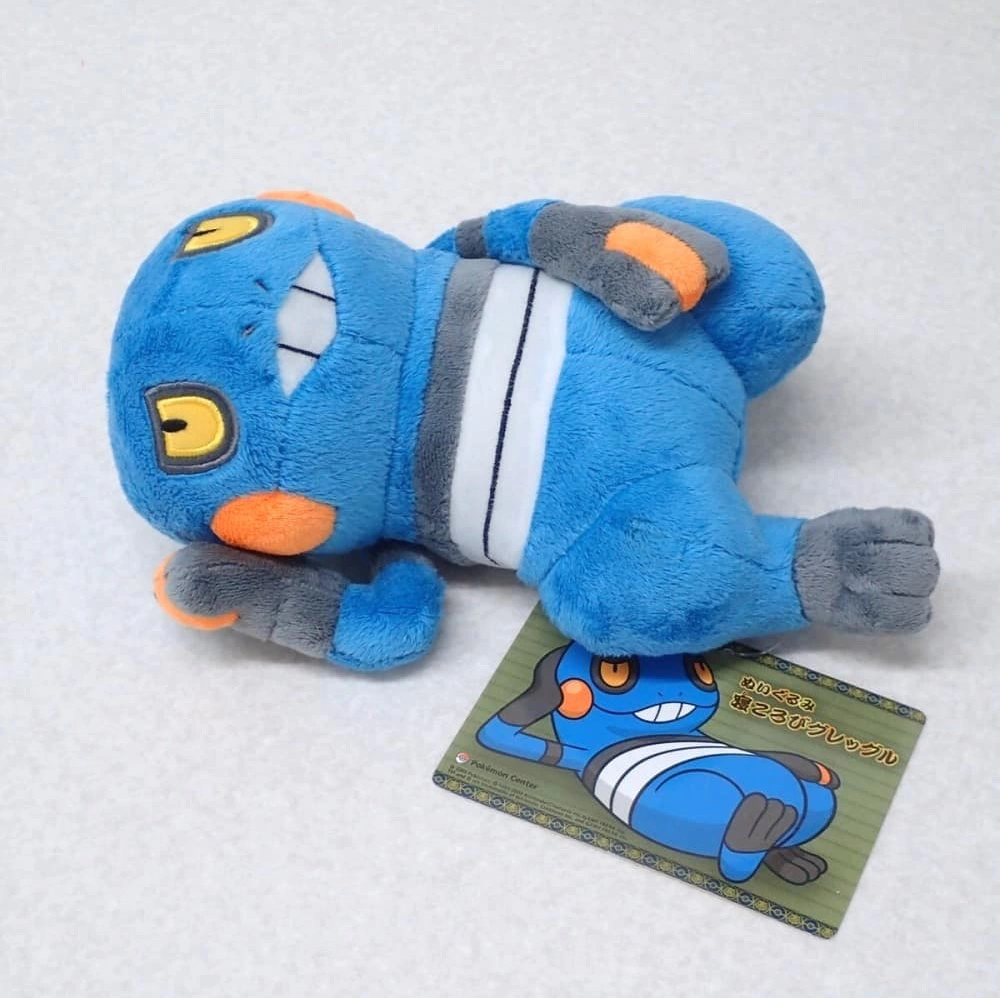 今回は、寝ころびグレッグルのぬいぐるみをお譲りいただきました!ゆる〜い寝姿がなんともシュール。戦闘中に寝転んで、相手を「ちょうはつ」しているのでしょうか…?