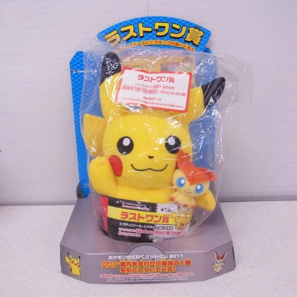 今回は、劇場版公開記念「ポケモンわくわくゲットくじ2011」ラストワン賞のビクティニとピカチュウのぬいぐるみをお譲りいただきました!映画の感動がよみがえる、癒しのコンビ!